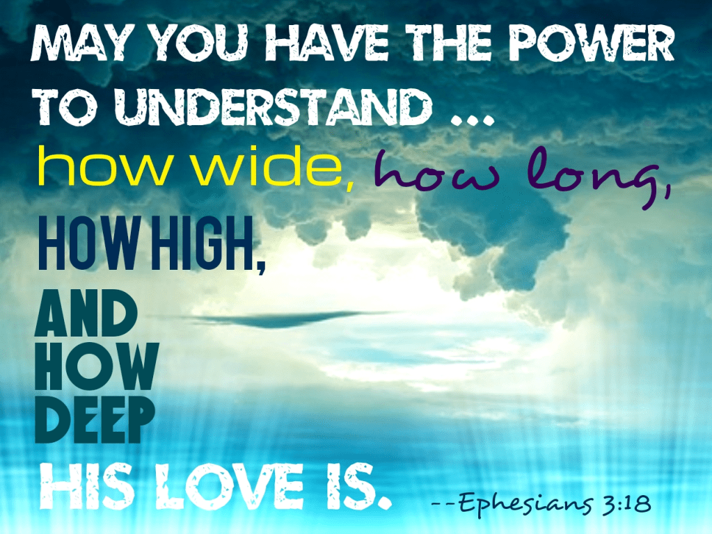 14 For this reason I bow my knees to the Father [a]of our Lord Jesus Christ, 15 from whom the whole family in heaven and earth is named, 16 that He would grant you, according to the riches of His glory, to be strengthened with might through His Spirit in the inner man, 17 that Christ may dwell in your hearts through faith; that you, being rooted and grounded in love, 18 may be able to comprehend with all the saints what is the width and length and depth and height— 19 to know the love of Christ which passes knowledge; that you may be filled with all the fullness of God.