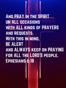 18 Pray in the Spirit [b] in every situation. Use every kind of prayer and request there is. For the same reason be alert. Use every kind of effort and make every kind of request for all of God’s people.